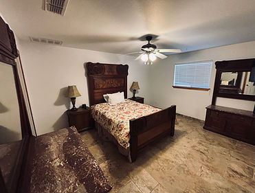 Our bedrooms were designed for space, comfort and relaxation. The Ranch House has two bedrooms with two queen beds and storage in each with an adjoining bath to share. The master suite has one bed and separate bath. Take a look at the pictures below or stop by to see for yourself.